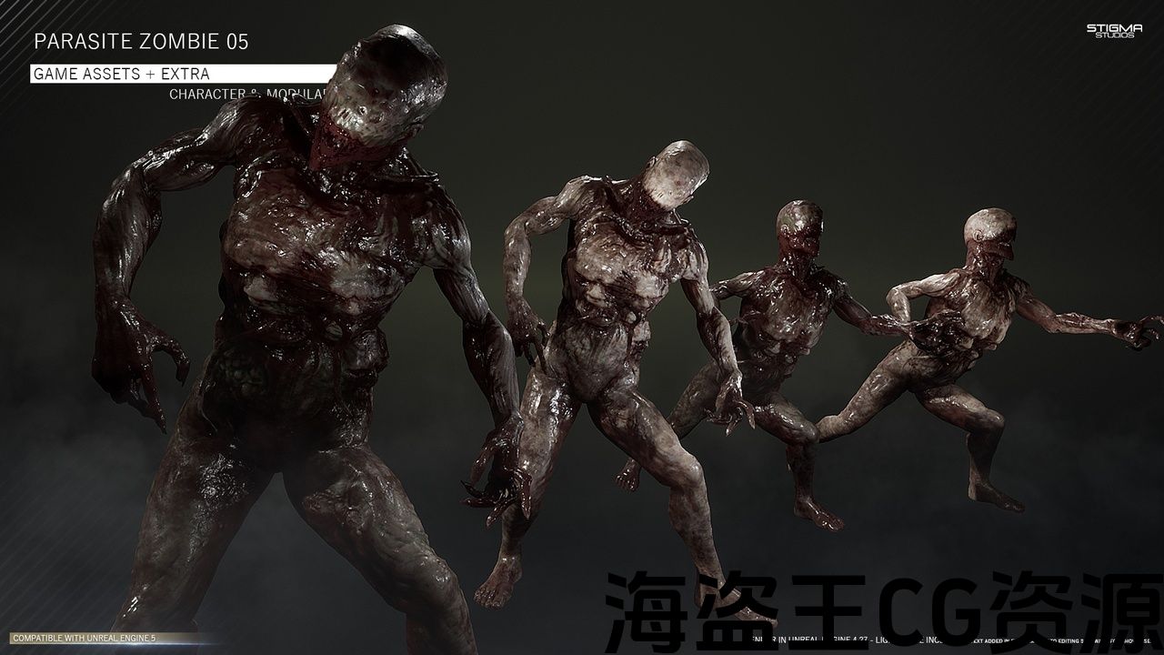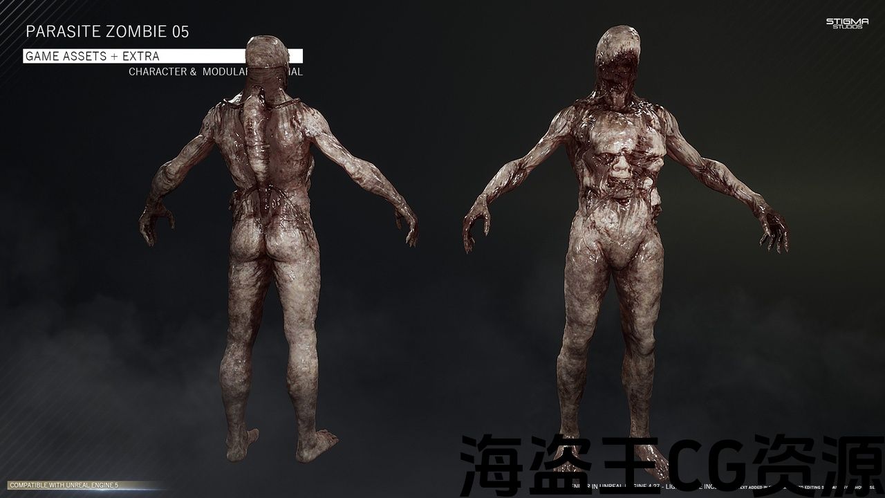 一个独特的寄生虫僵尸为您的游戏,设计是多才多艺的现代,未来或中世纪恐怖/动作游戏与变种材料和模块化材料!