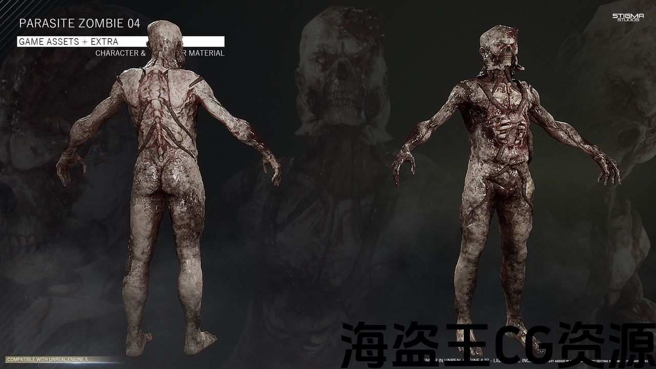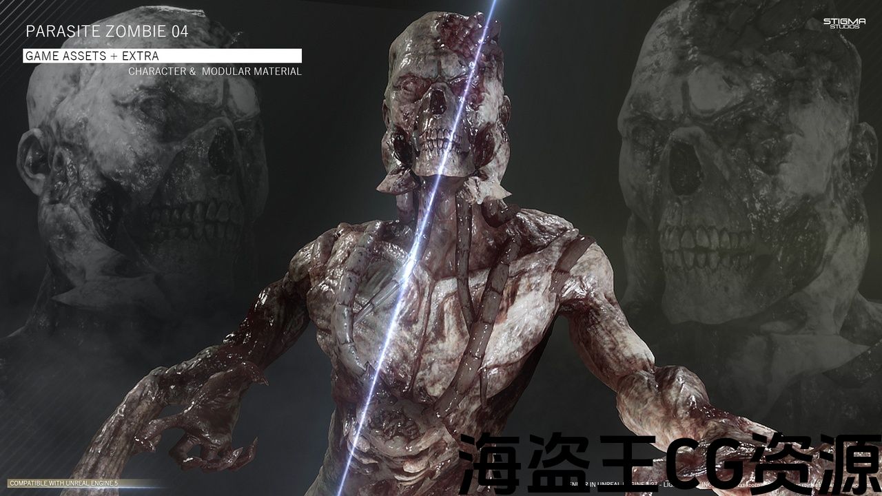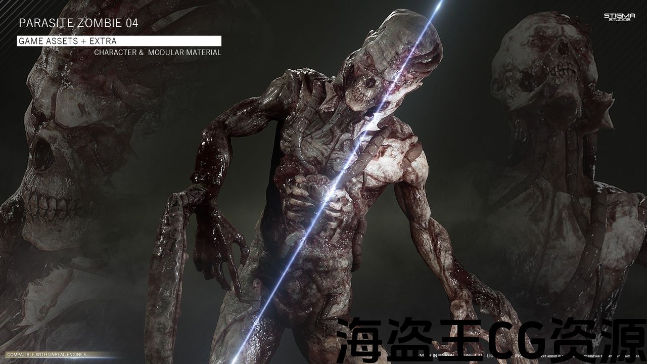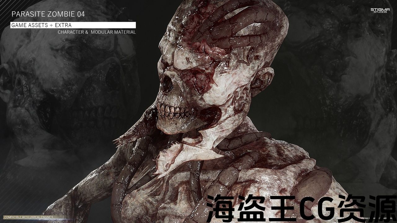 一个独特的寄生虫僵尸为您的游戏,设计是多才多艺的现代,未来或中世纪恐怖/动作游戏与变种材料和模块化材料!