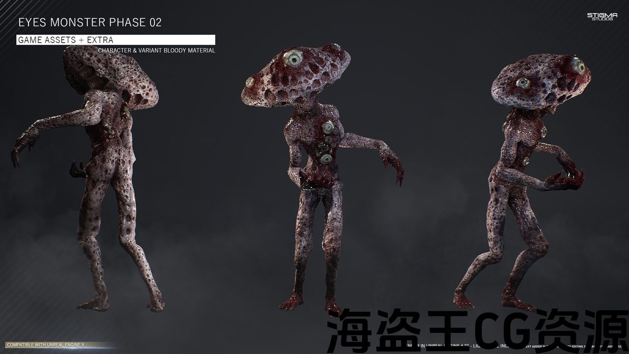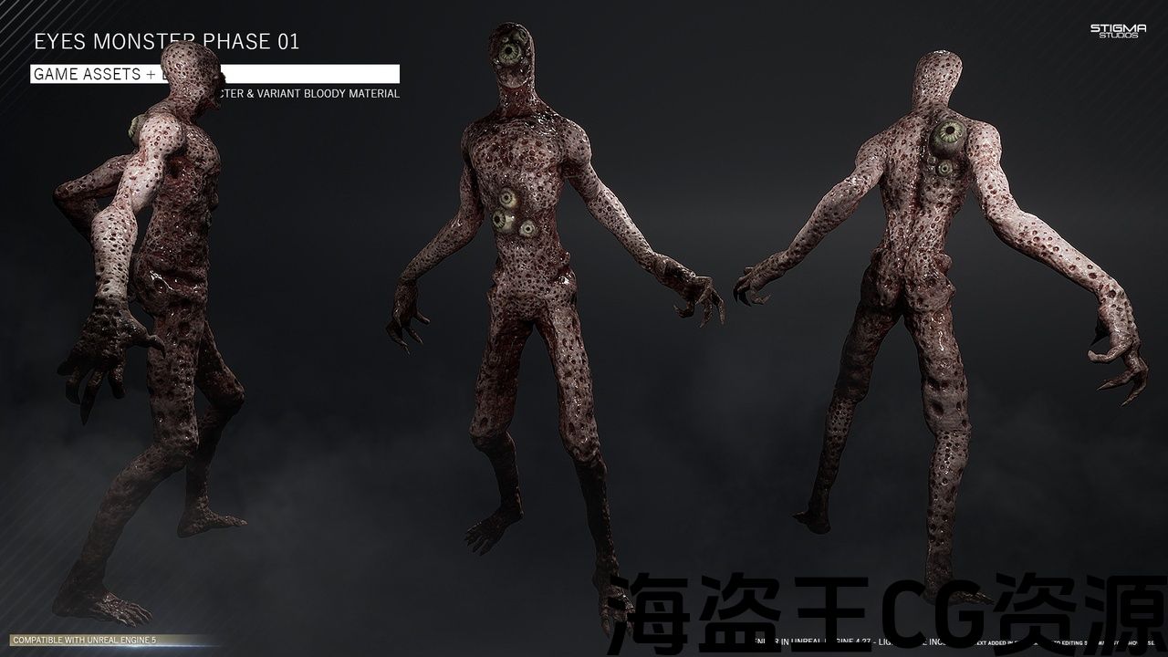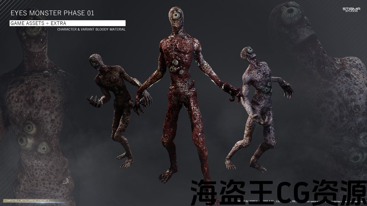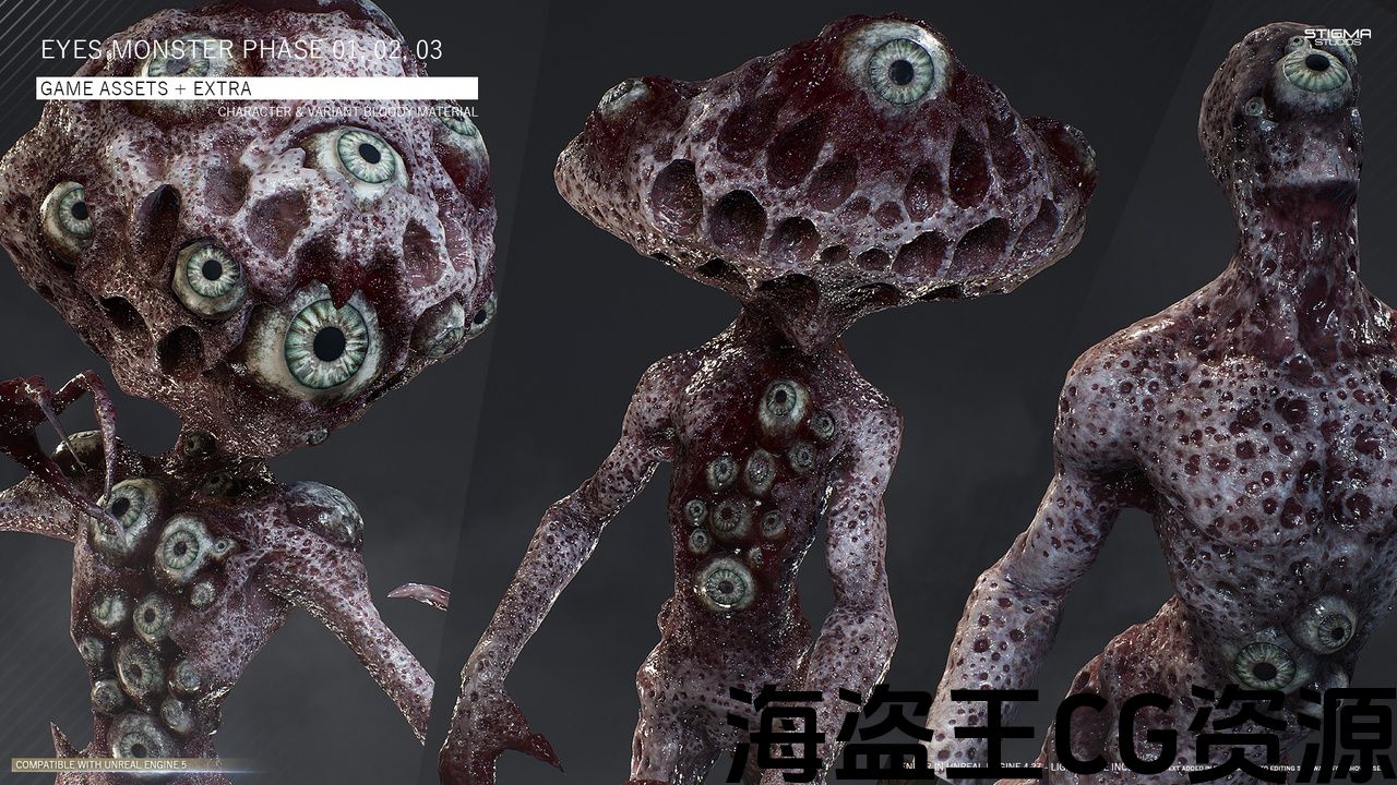 三个独特的眼睛怪物角色与变种血腥材料设计是多才多艺的现代,未来或中世纪恐怖/动作游戏!