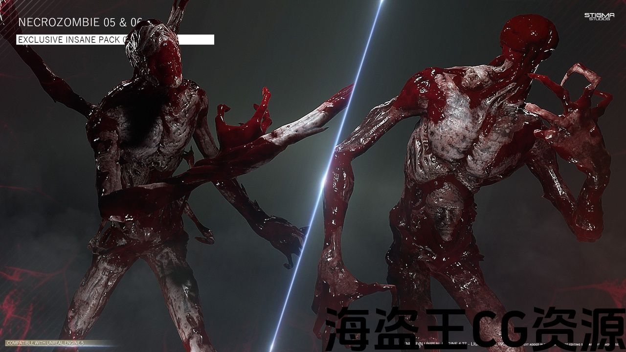 Eight unique Necrozombie character with extra weapon limbs Designed to be versatile for the Modern, Futuristic or Medieval Horror/Action game!