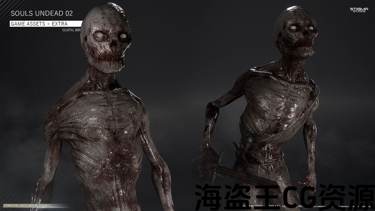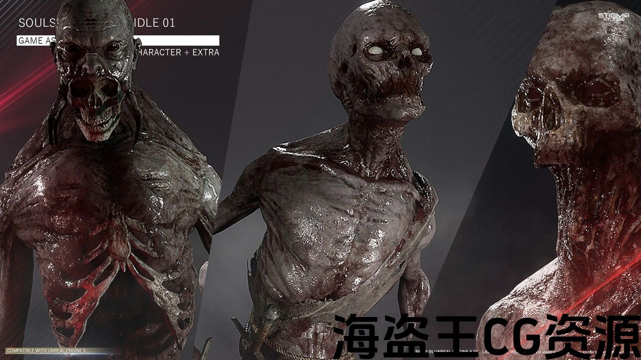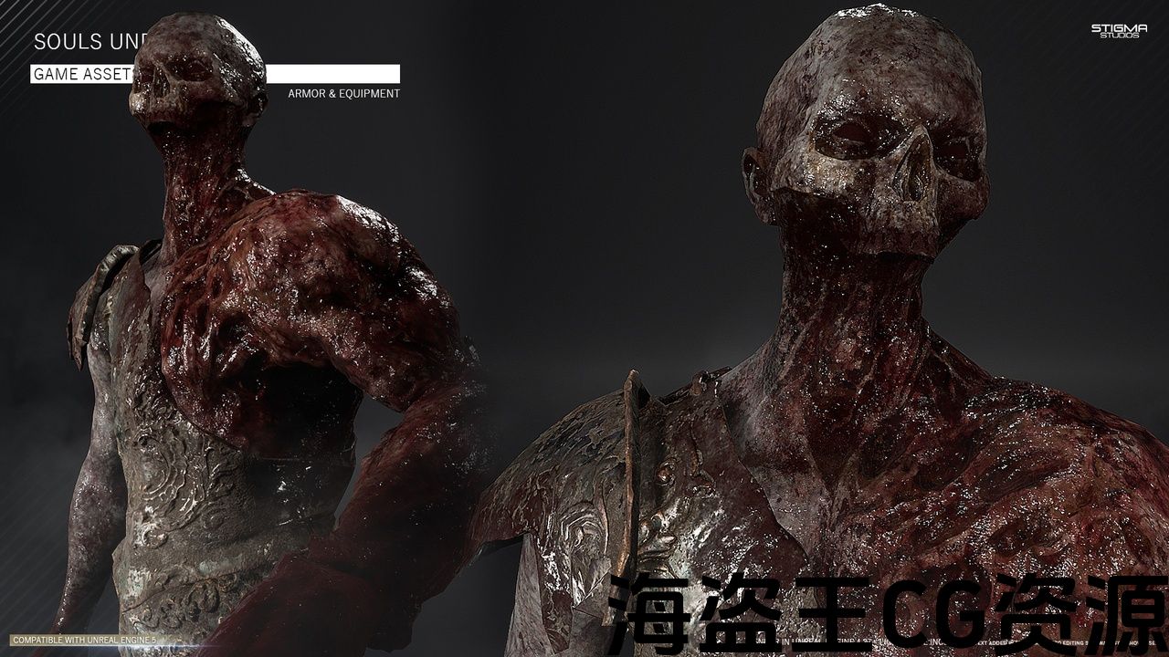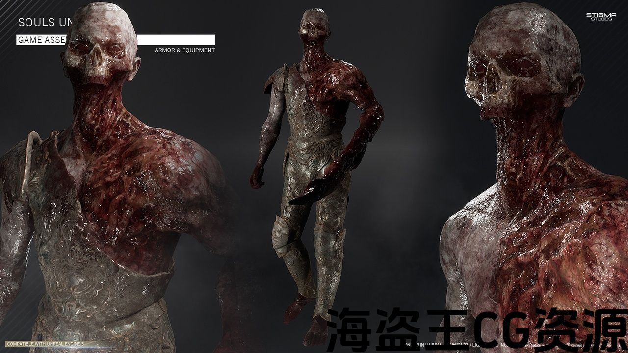 三个独特的灵魂亡灵为您的游戏,设计是多才多艺的现代,未来或中世纪恐怖/动作游戏与设备和盔甲!