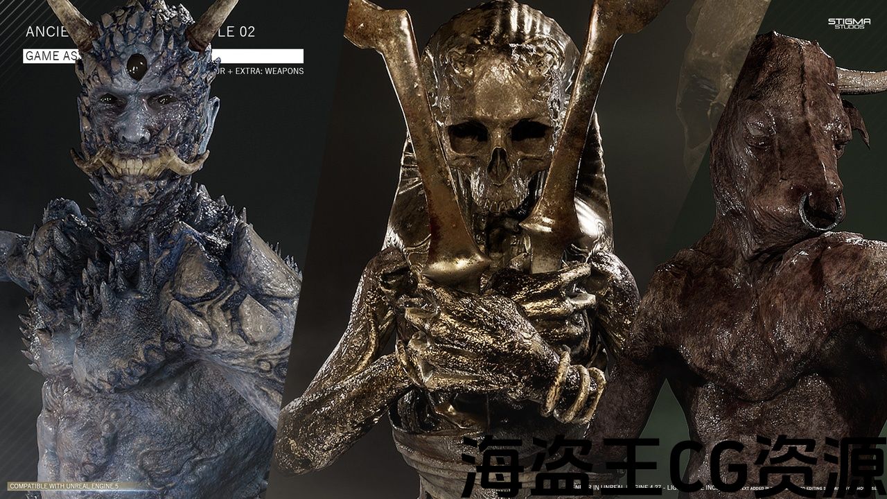 三个独特的古老生物”蓝色Oni,金色木乃伊,牛头怪”与额外的类似武器,旨在为现代,未来或中世纪的恐怖/动作游戏多才多艺!