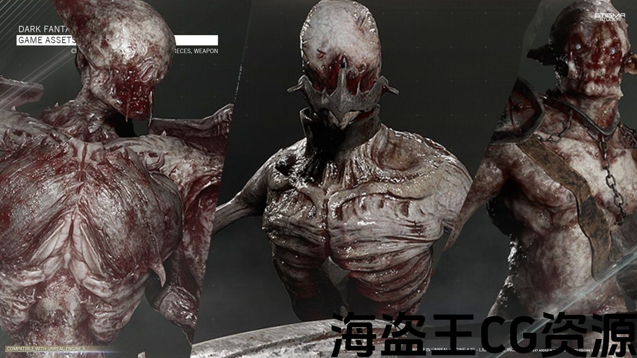 Three Dark Fantasy creature Dampyr, Undead Gigant and Warrior Orc with Armor set for your game, designed to be versatile for the Modern, Futuristic or Medieval Horror/Action game!