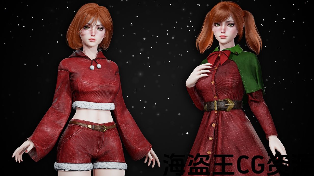 IMPORTANT FOR GIRL IN DRESS!!! I included bones in the dress and cloak so after retargeting you can move these parts to avoid intersections.