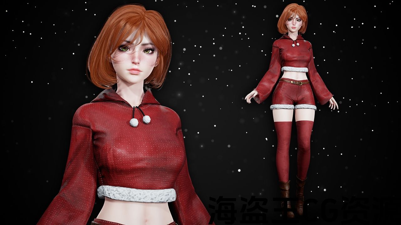 女孩在连帽衫-LOD0:面孔:36618,tris70095,verts40481