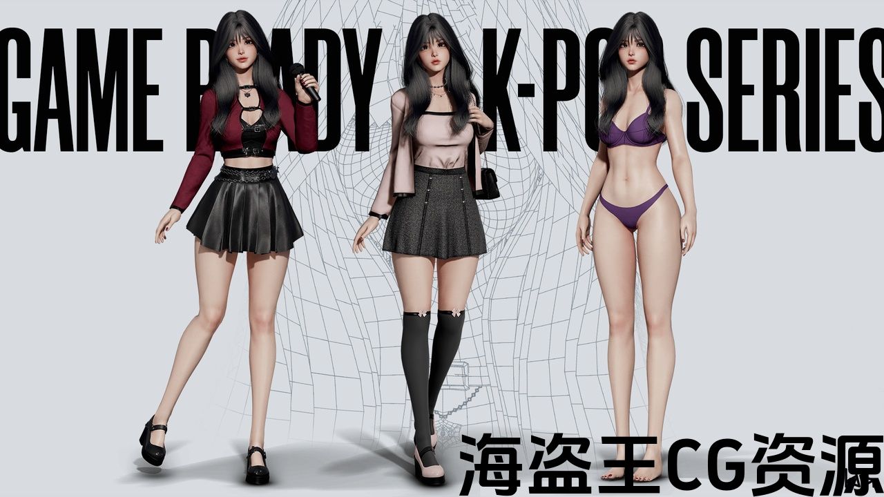 Perfect 3d model of a cute K-POP Girl Mina. She has 3 different outfits, ARKit blendshapes, an epic skeleton rig, and many color options.