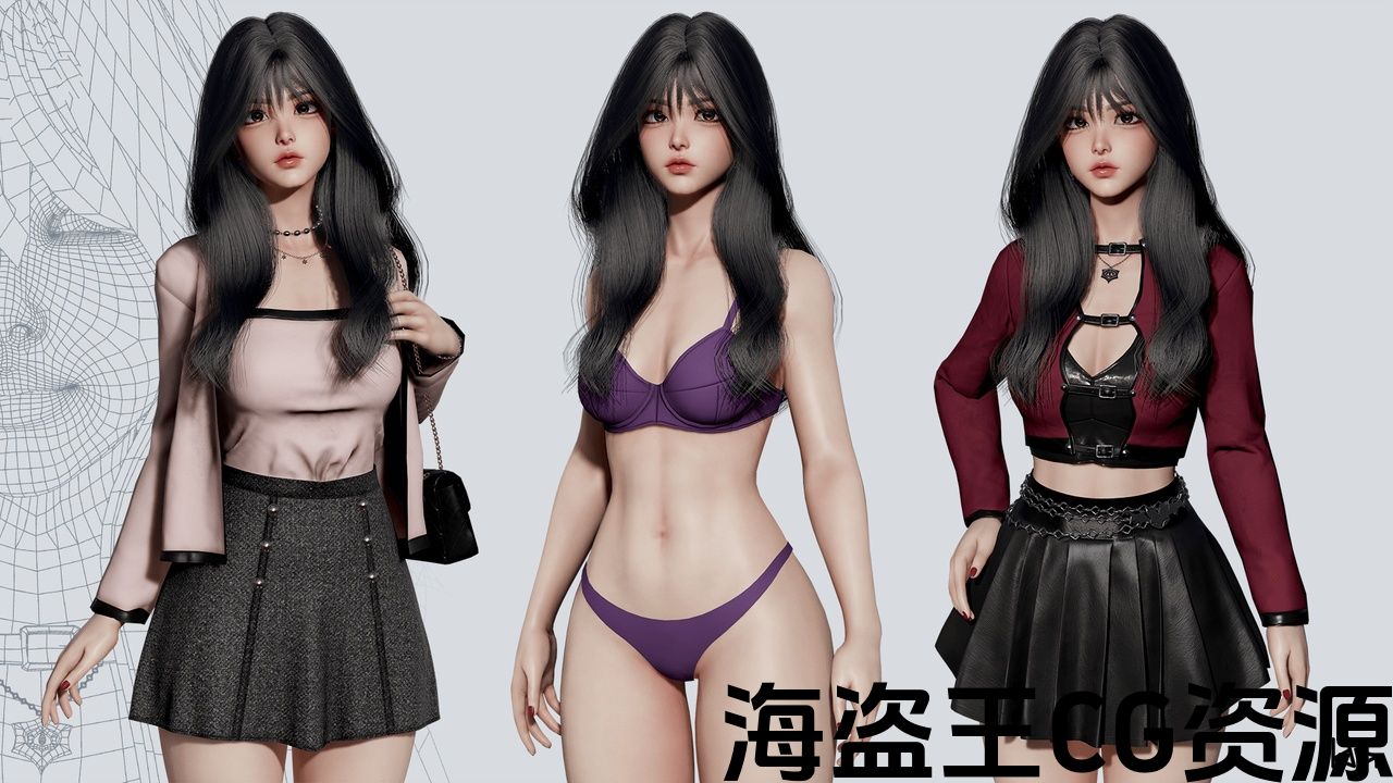 一个可爱的K-POP女孩Mina的完美3d模型。 她有3种不同的服装,ARKit blendshapes,史诗般的骨架钻机和许多颜色选项。