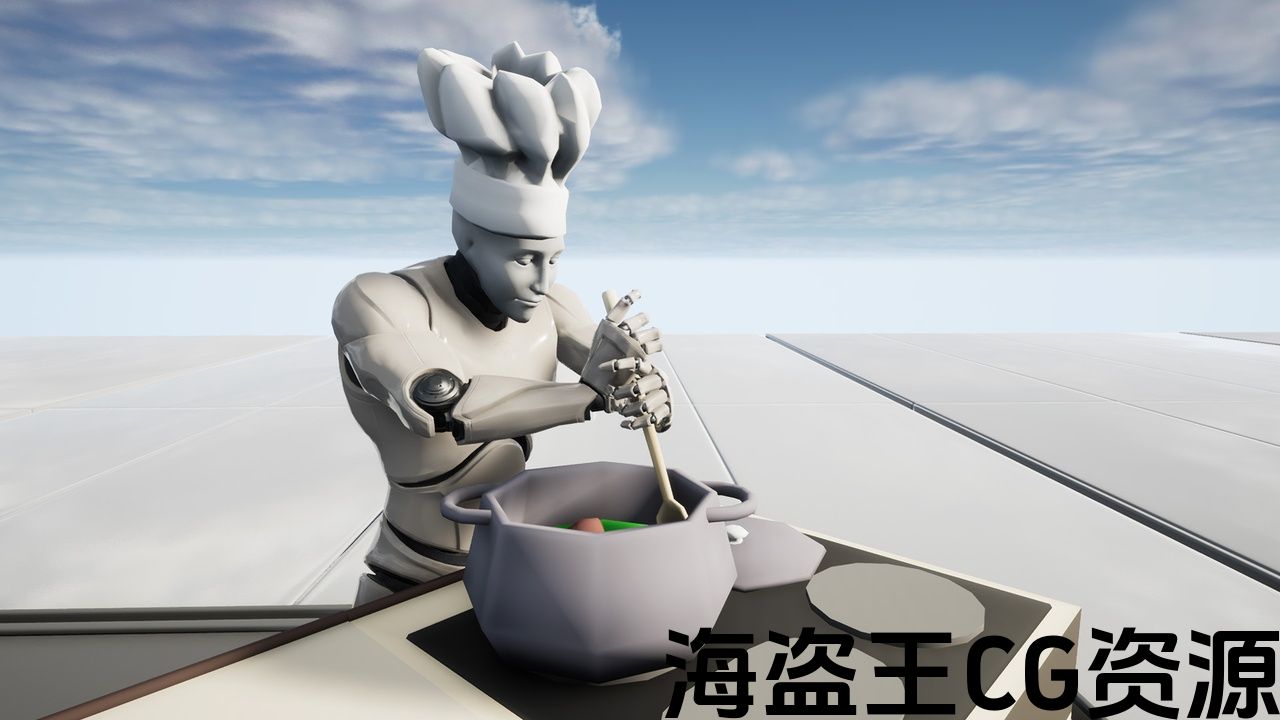 收集烹饪相关的mocap动画,包括脸部和手部动画。 展示的道具与材料也包括用于演示目的.