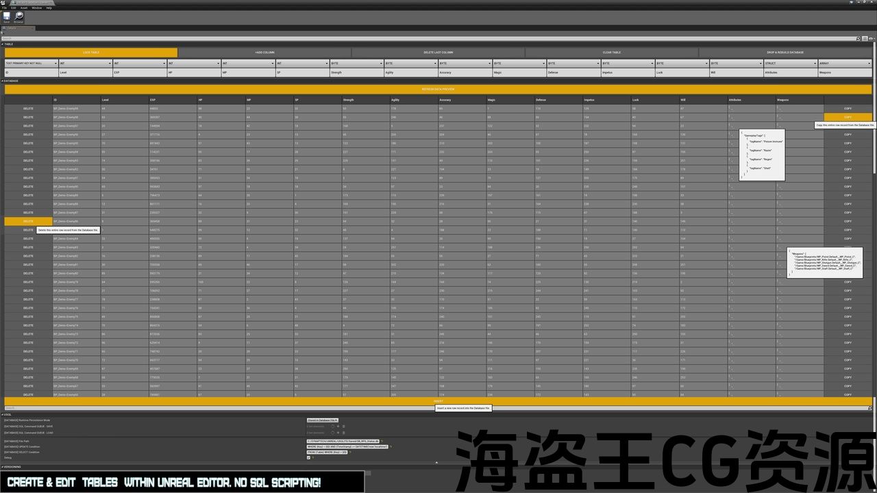 - 在虚幻编辑器中创建和编辑数据库资源!