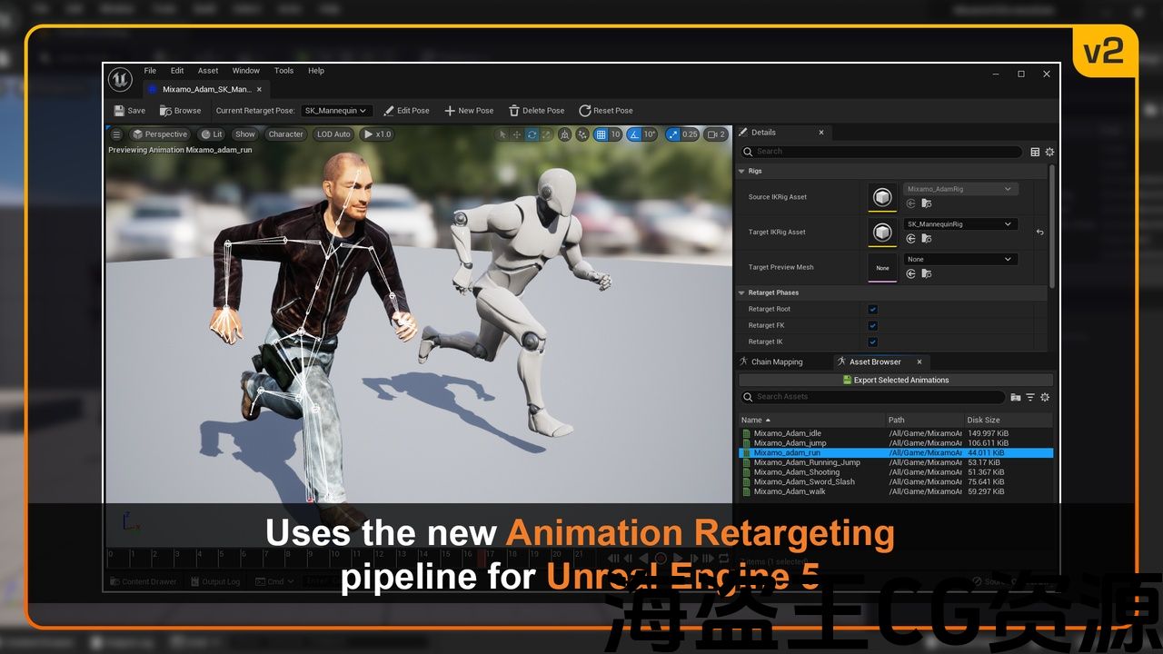 Ue5Mixamo动画重定位2 是一个编辑器插件,有助于集成 混合,混合 资产(从自动装配器、3d角色、3d动画导出)到 虚幻引擎5.