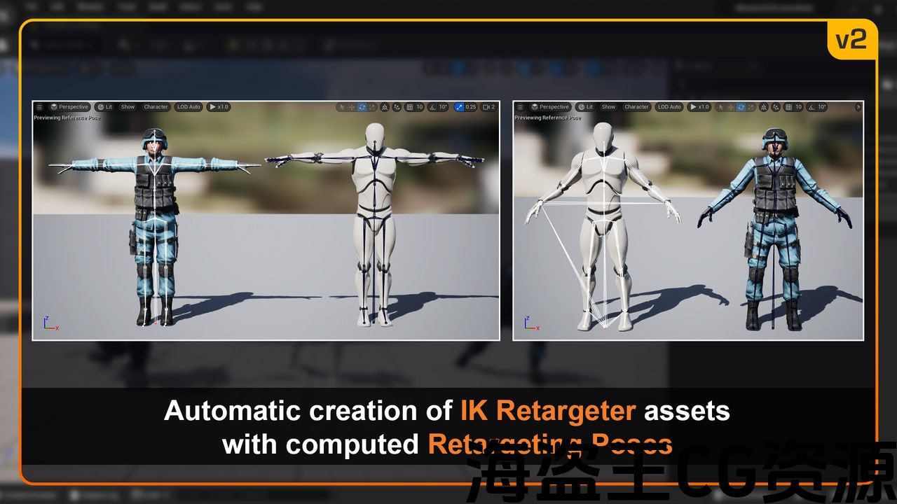 它的核心特征是一种精确的分析方法来计算 重定位姿势 虚幻引擎5需要管理Mixamo资源。 该插件自动创建所需的所有资源和配置 UE5Ik钻机和Ik重定向器 虚幻引擎5的系统(一种引擎功能,允许使用不同的骨架资源在角色之间重复使用动画)。