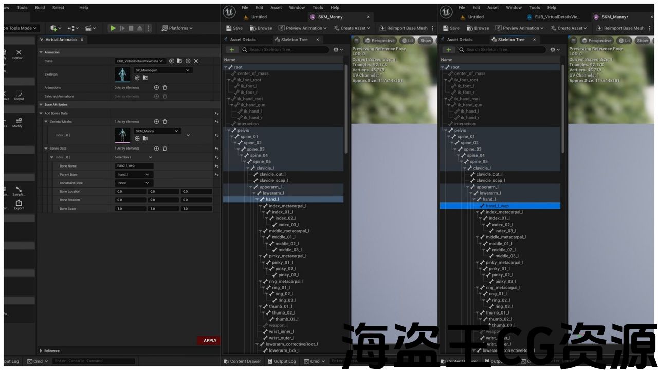 <2>将IK武器骨骼上的数据复制到手持武器骨骼上。