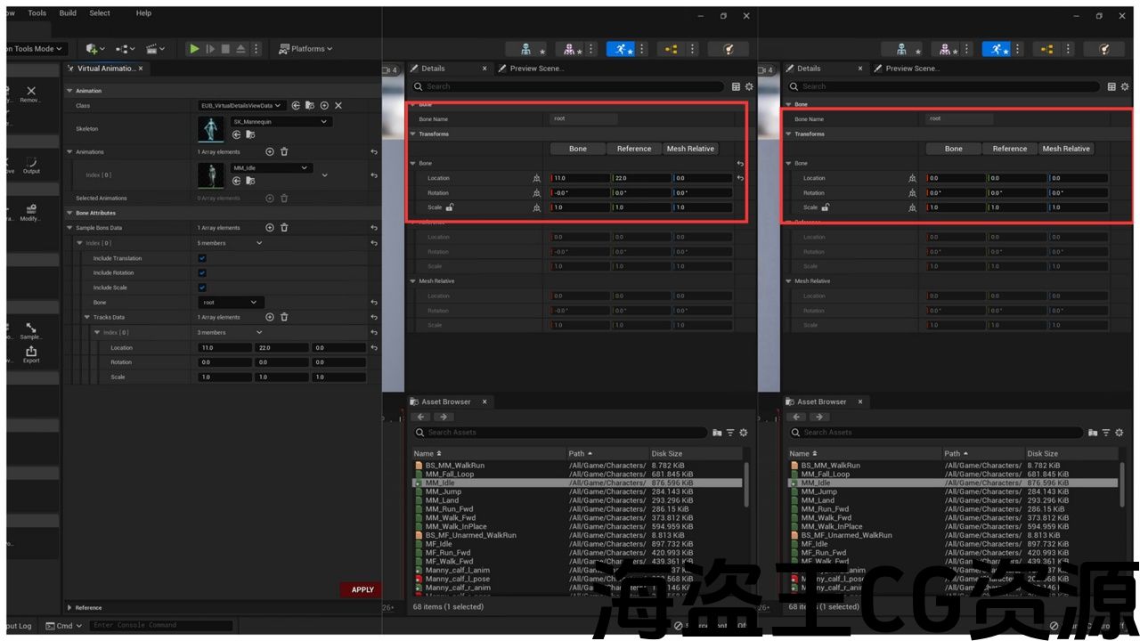 - 替换动画姿势帧(可以修复与第一个和最后一个循环的姿势不匹配的动画资源)