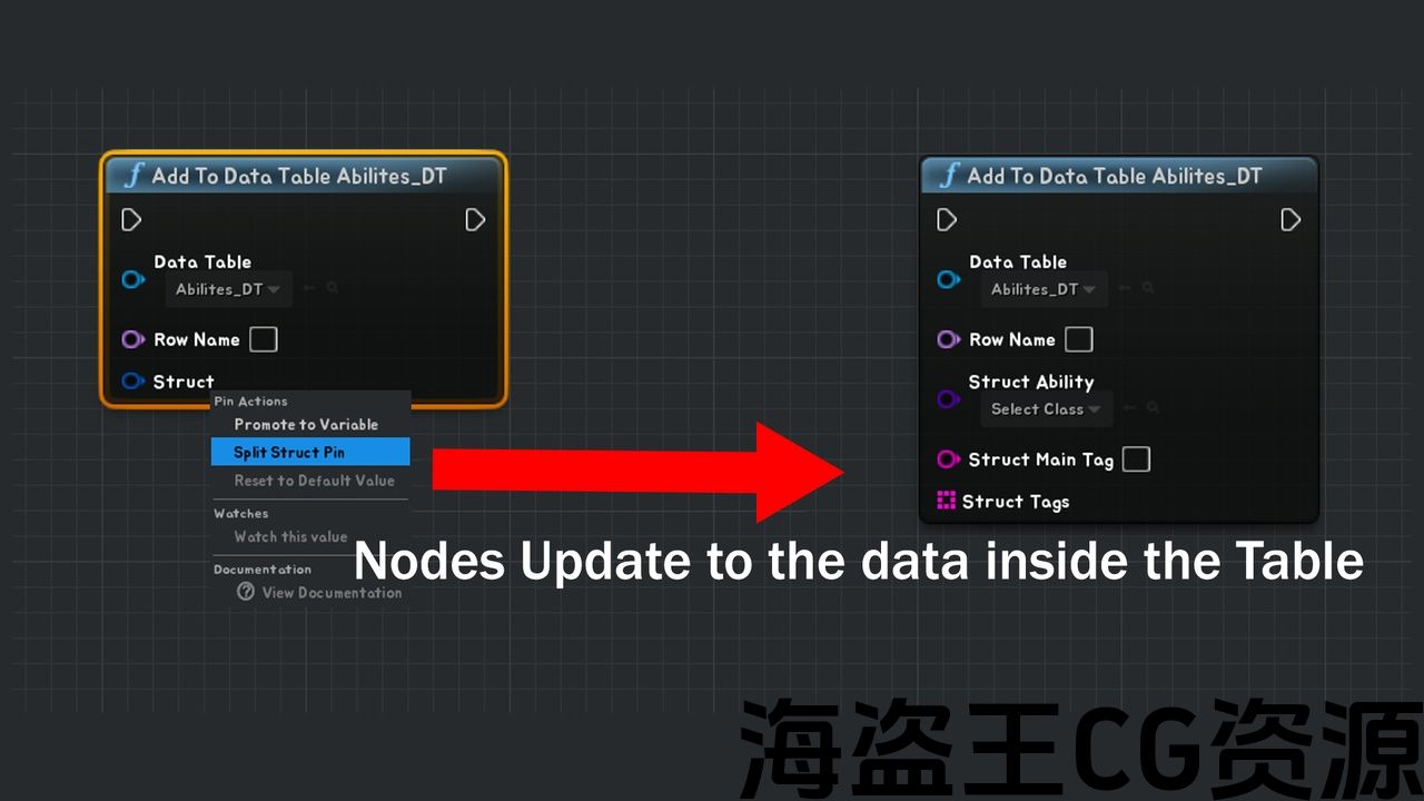 数据表在虚幻引擎中是一个非常有用的工具,但遗憾的是蓝图没有在C++中获得的相同功能。 这个插件的创建是为了将这些特性公开到蓝图中供每个人使用。 使用K2节点的强大功能,您可以轻松地添加,删除和更改数据表中的数据,而节点将自动更新为结构中的变量。