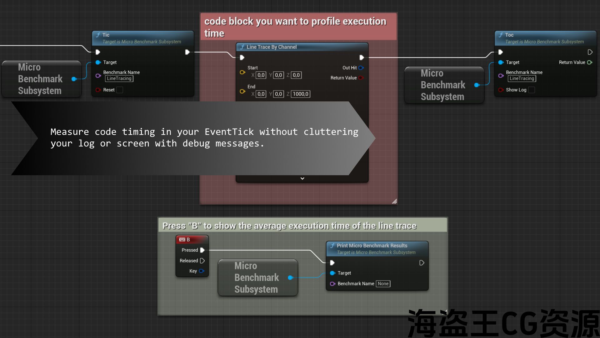 通过用简单的”tic”和”toc”语句包装任何蓝图或代码块,直接测量其执行时间。