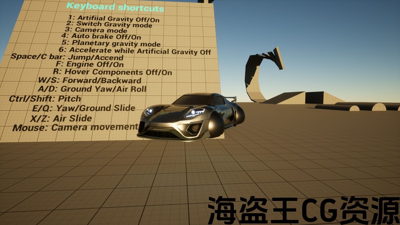 - 该插件包含一个静态网格版本的UE5基本赛车(但它有悬停基地,而不是车轮)