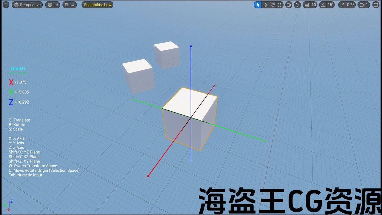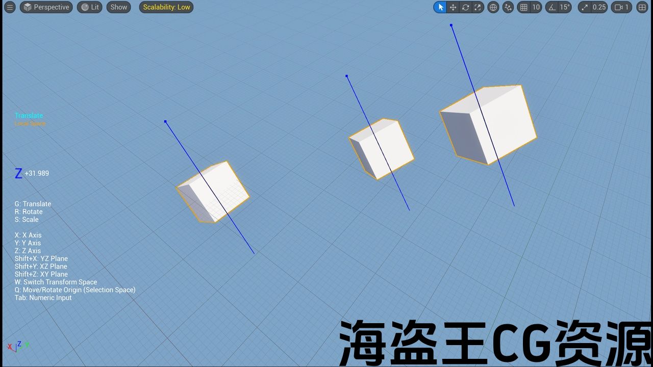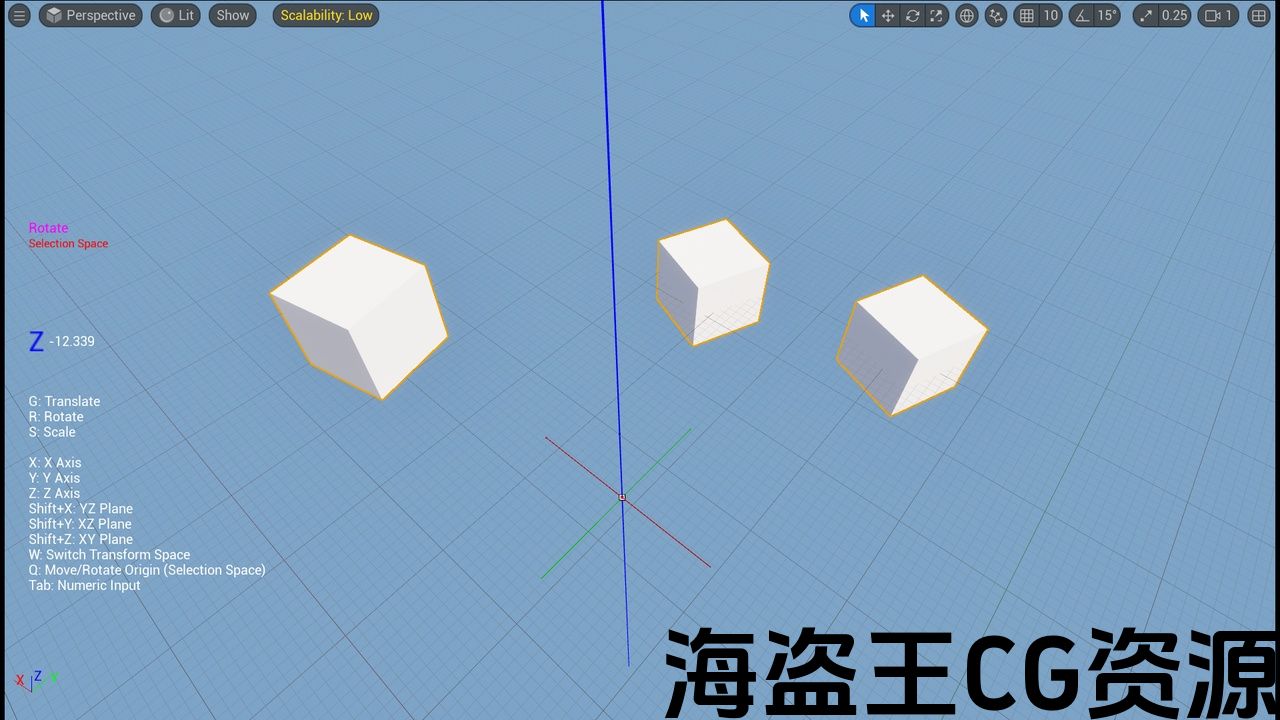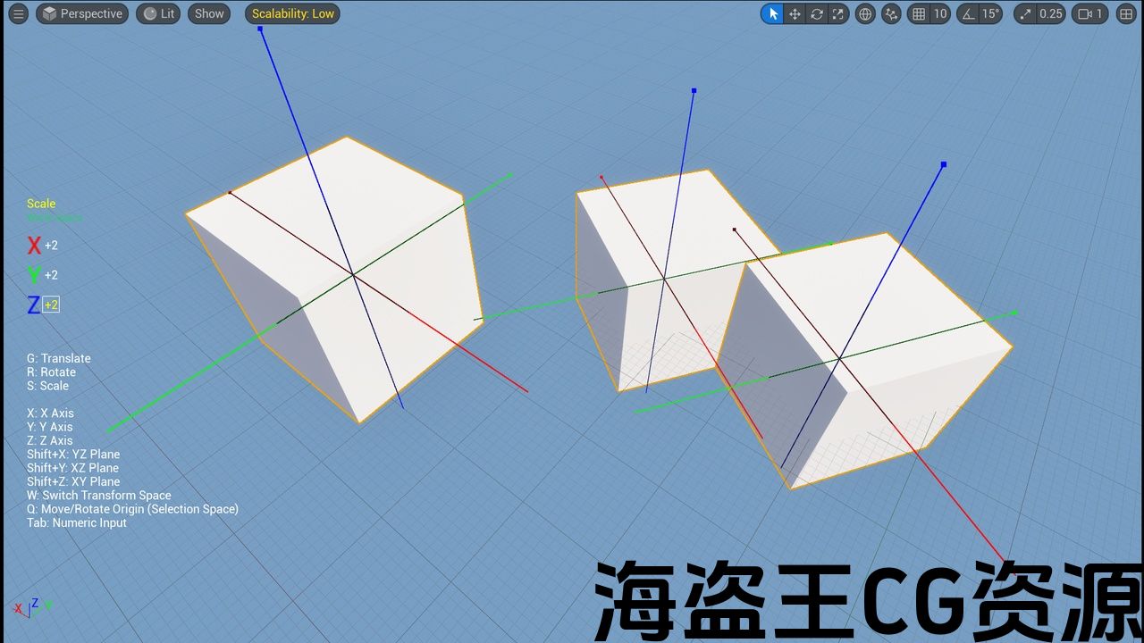 通过热键快速转换类型选择。 默认’G’用于翻译,’R’用于旋转,’S’用于缩放,就像Blender一样。