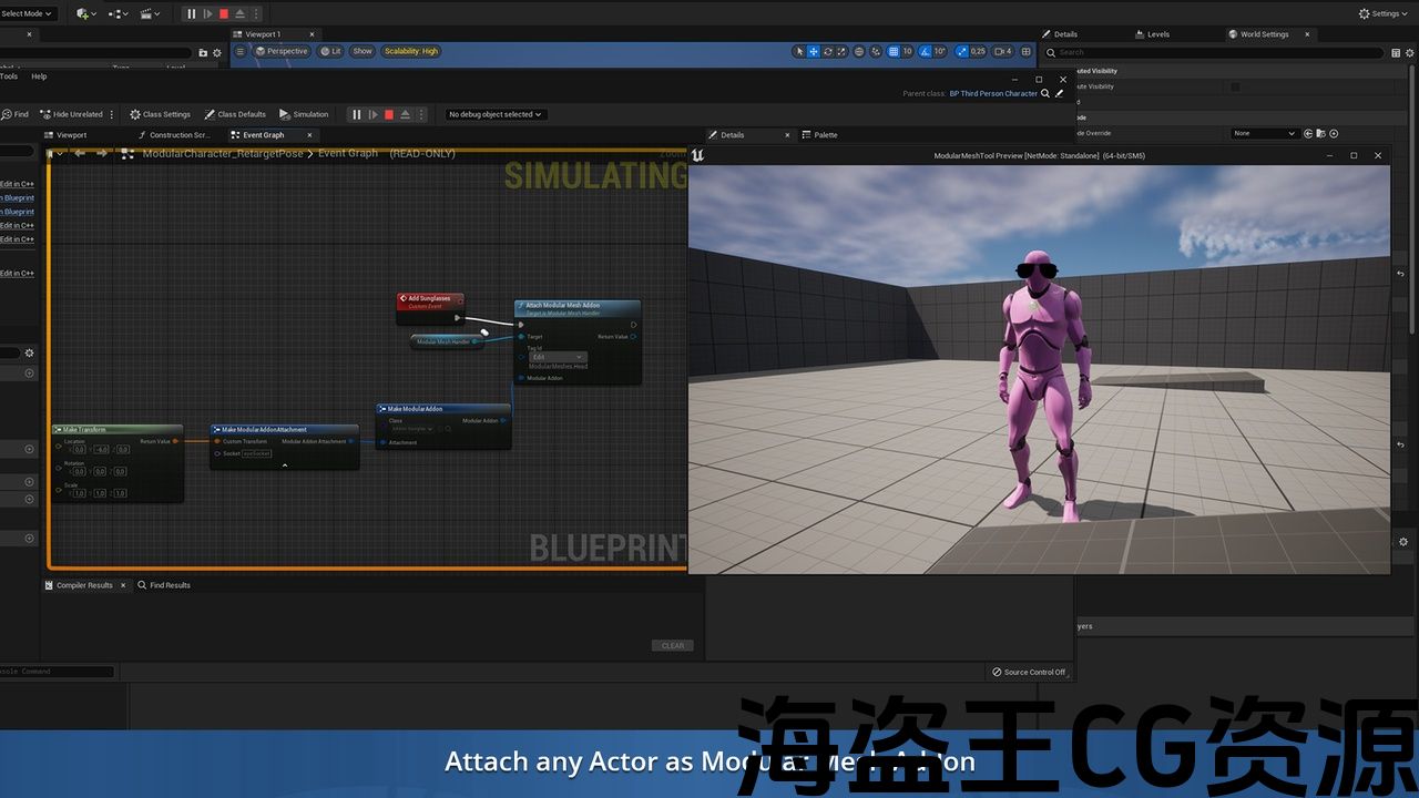 将任何Actor附加为模块化网格加载项。