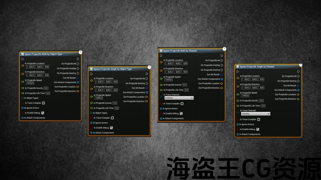 - You can spawn projectile Single/Multi By Channel/ObjectType