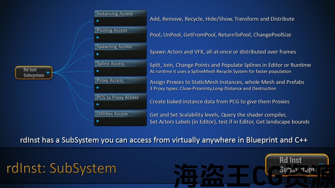 这就像在蓝图中调用”rdAddInstance”节点,指定静态网格体和转换一样简单。 删除它们就像使用”rdRemoveInstances”一样简单–它只删除当前蓝图使用的实例。
