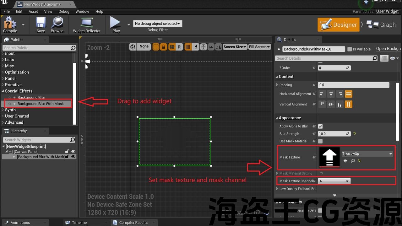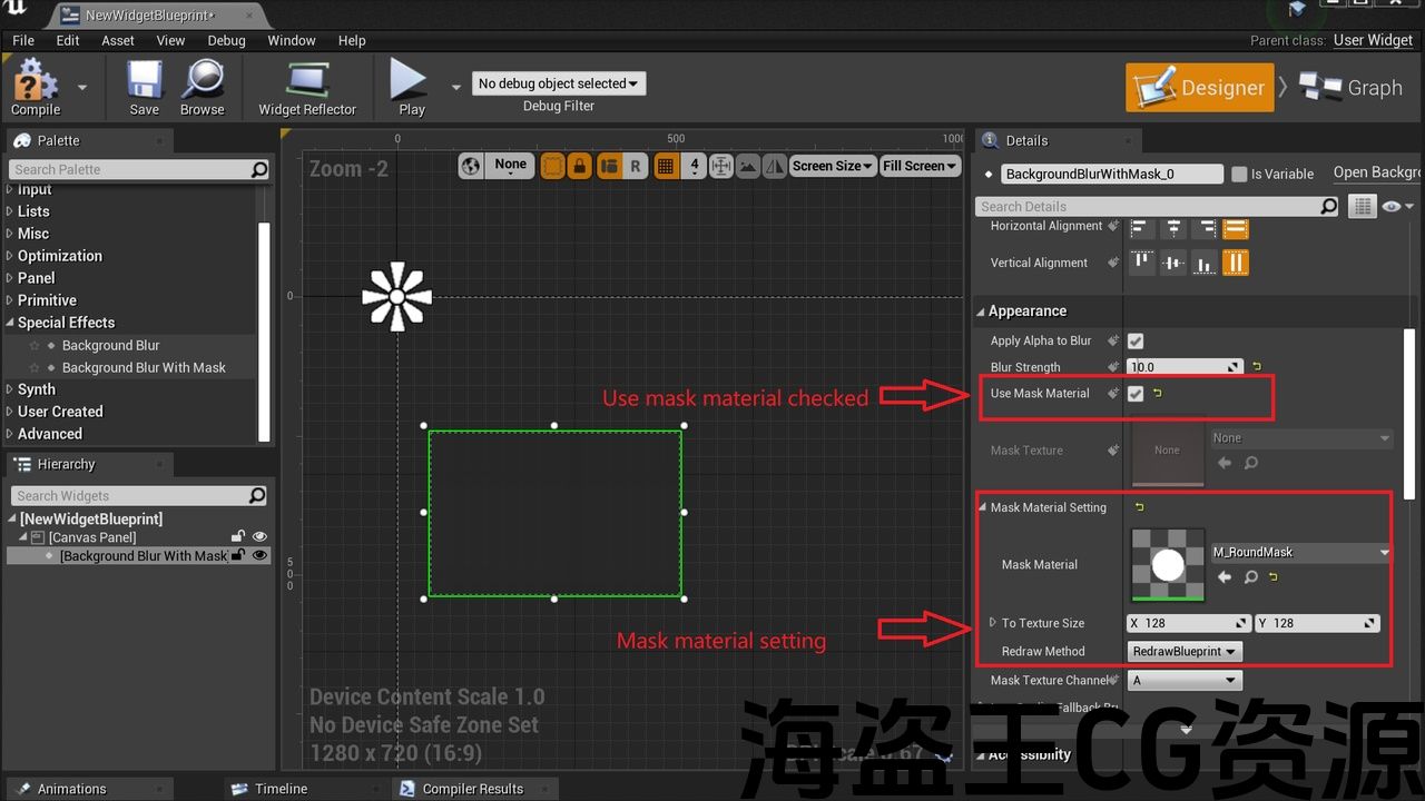 改进虚幻的origin BackgroundBlur控件,以便应用蒙版纹理(或材质)来控制模糊效果区域。