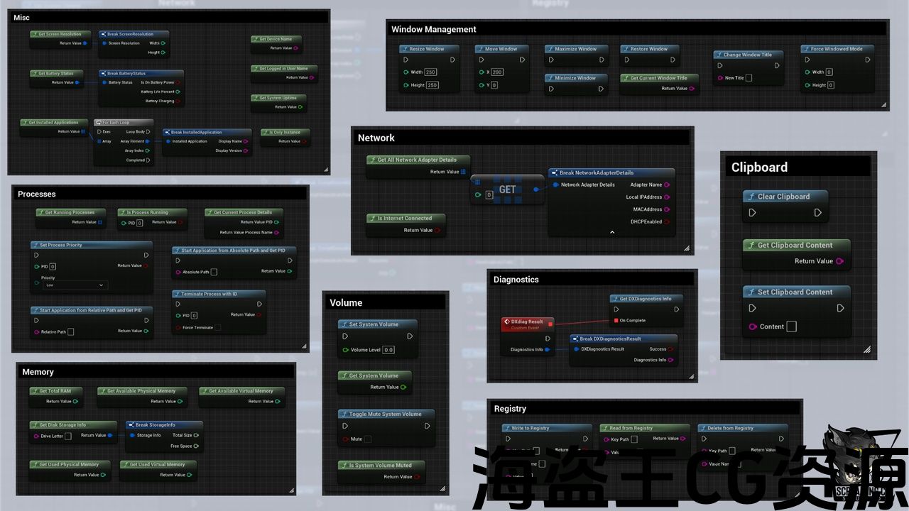 This plugin offers a huge collection of functions that take advantage of many Windows libraries. The C++ files are heavily commented and easy to follow along.