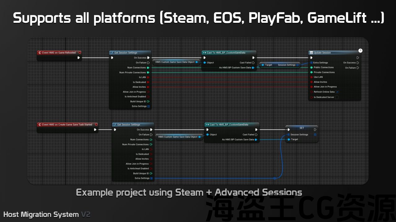支持任何平台(EOS,Steam,Amazon Gamelift,Android,IOS)