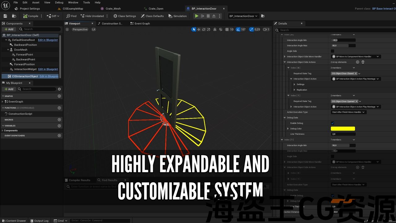 With it, you can create various types of interactions, ranging from a simple light switch to complex cases, like a door where different animations should play from different sides depending on the current state of the door and from which side it is being opened.
