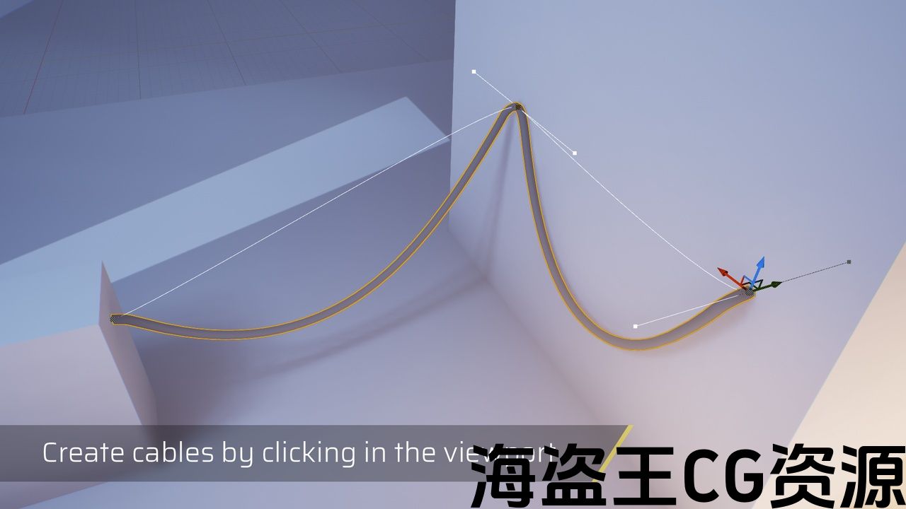 可以使用虚幻的样条工具来控制仿真前电缆的整体路径。