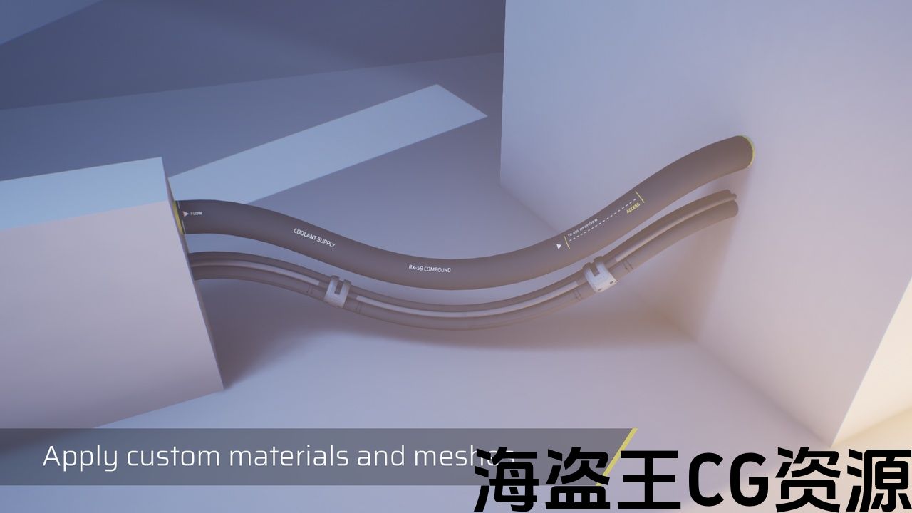 The mesh for the cable can be generated procedurally using a specified resolution for the number of sides and edge loops, or use a user-specified mesh for full control of the final result.