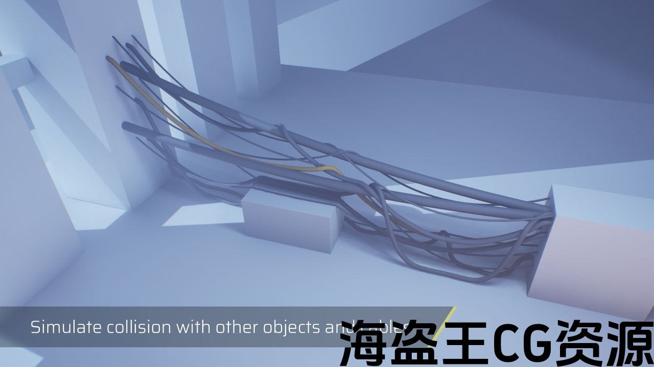 模拟支持与世界上其他物体的物理碰撞,包括其他电缆,允许它们在地面上缠绕并相互悬挂。