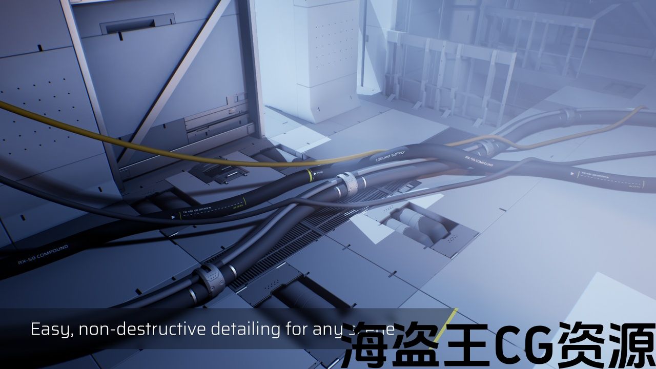 Tether是一款用于在虚幻引擎编辑器中创建电缆、绳索、链条、柔性管道和其他长弯曲对象的工具,用于环境艺术和布景修整。 Tether在编辑器中模拟物理并构建静态网格体,允许使用非破坏性工作流程快速创建和迭代电缆。