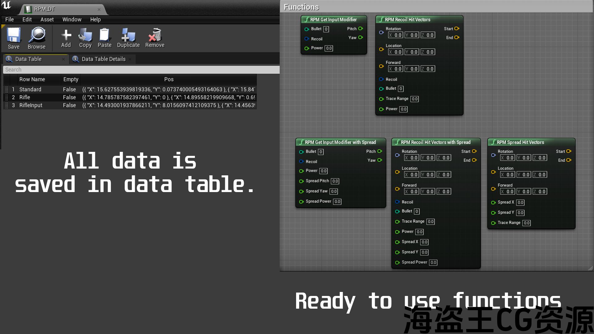 现在您可以在任何地方创建DataTable,只需从RPM_DTStruct创建一个数据表,名称以 “RPM_“. 现在,在打开RPM窗口之前,只需在内容浏览器中选择此表即可。 请使用自定义数据表,以免更新时丢失数据。