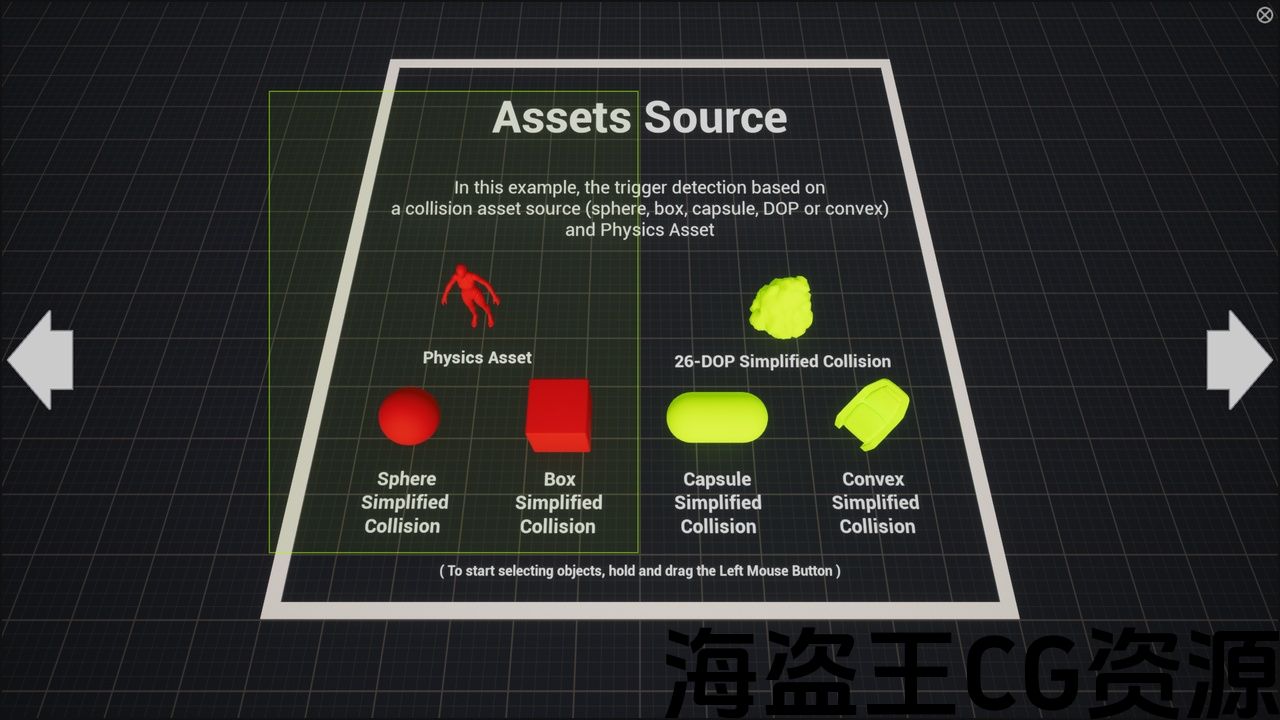 为了检查交叉点,该插件使用本机碰撞形状(盒子,球体,胶囊,凸面,DOP),它允许以可接受的精度构建物体的任何形状。