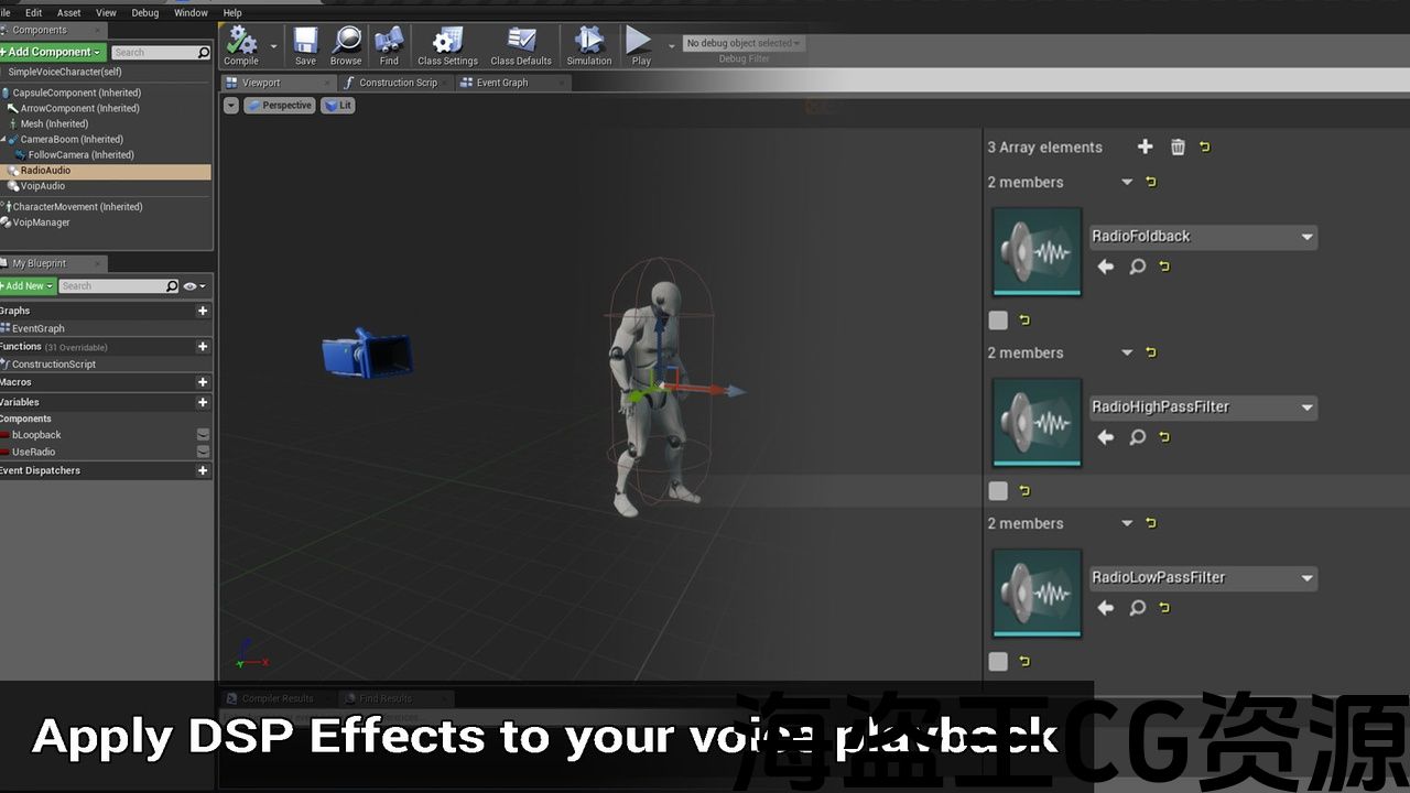 使用SynthComponent进行音频播放,这使您可以轻松应用动态音效,例如使其听起来像无线电广播。 这还允许您调整衰减等设置,以便您可以将插件用于本地/位置VOIP或您想要的任何其他情况。 与引擎中的默认实现不同,如果需要,您还可以在运行时更改麦克风。