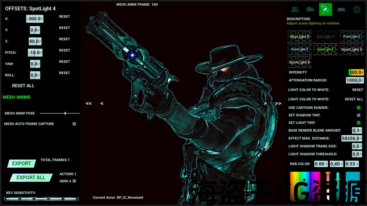 - Option to turn on / off to cast shadow off the actor and all the attachments.
