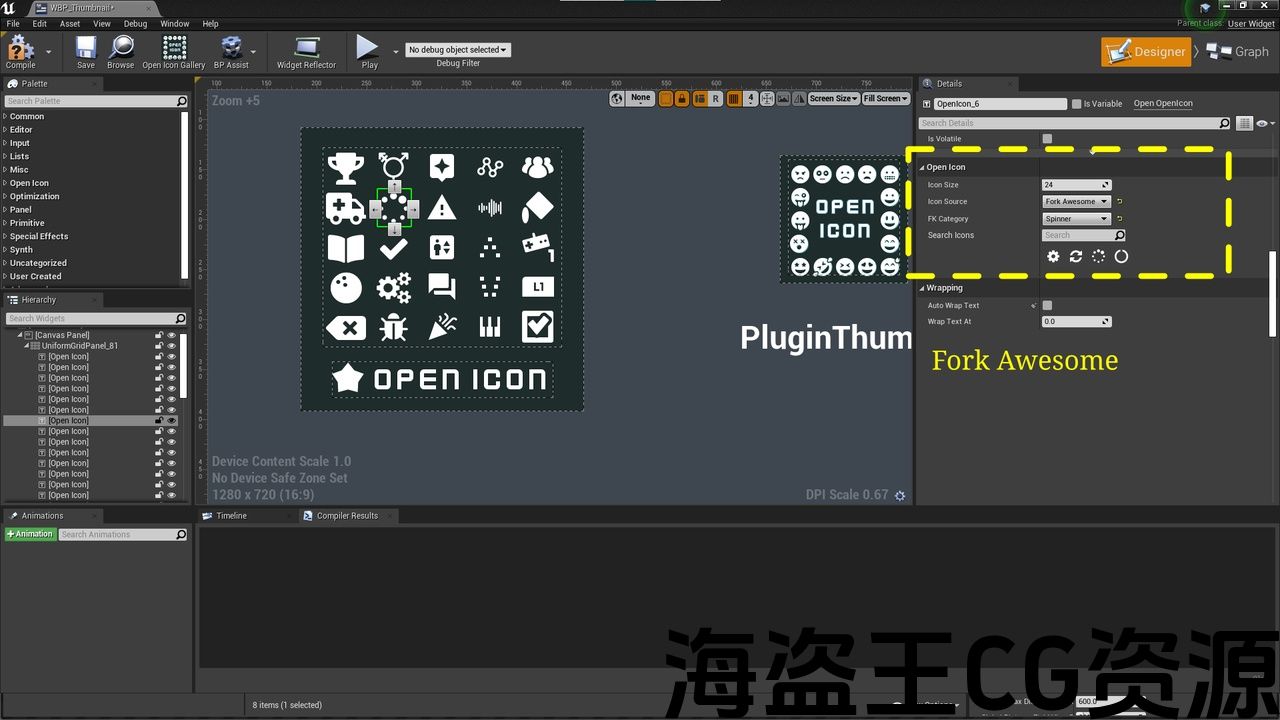 这个插件提供了一个超级简单的方法来使用打开图标的用户小部件。 它简化了打开图标的使用,通过点击细节面板来选择你喜欢的图标。 如果要在蓝图中动态设置图标,还包括一个用于复制图标ID的图库窗口。 搜索功能也包含在这个插件! 虽然图标最初是文本,但您可以将它们转换为纹理。