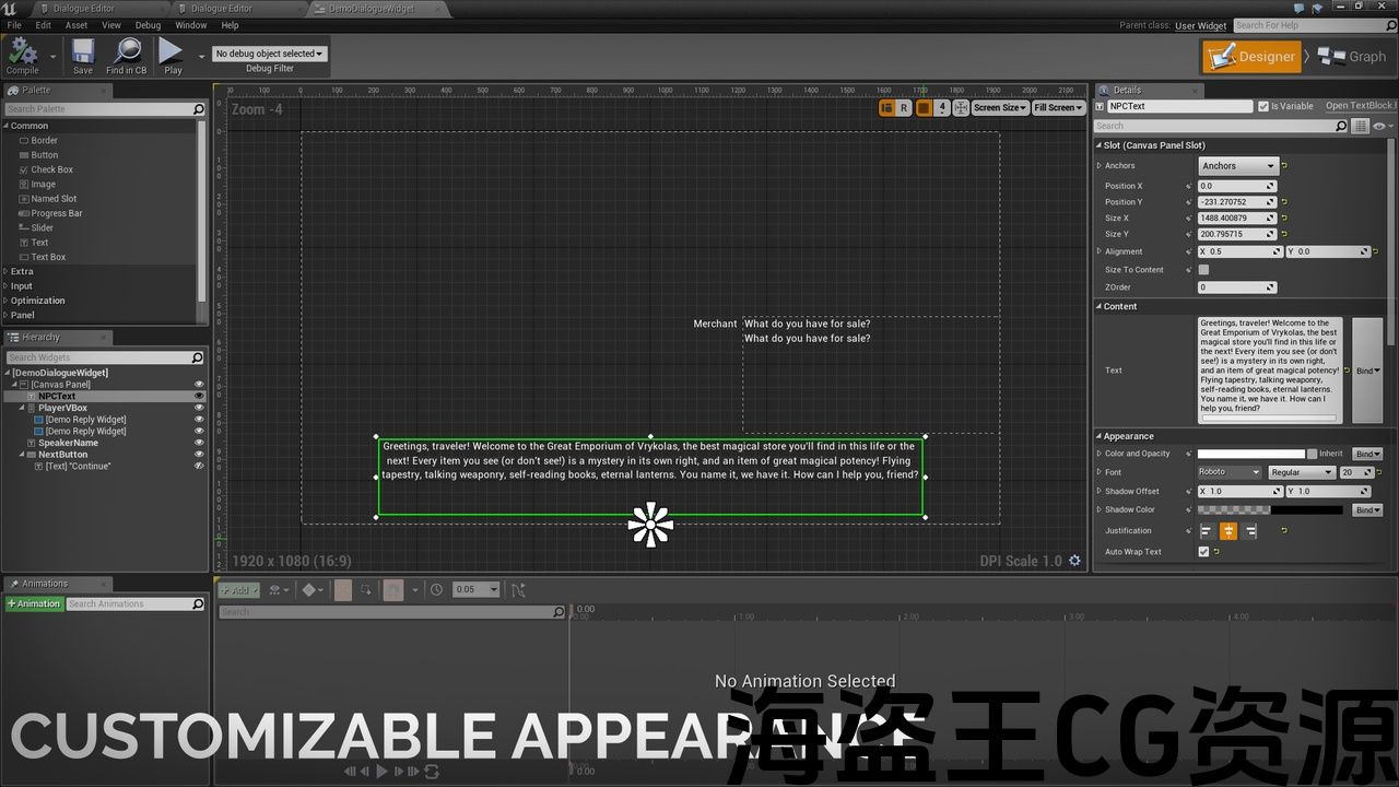 *用于在游戏中显示对话的演示UMG小部件,可由用户复制和定制