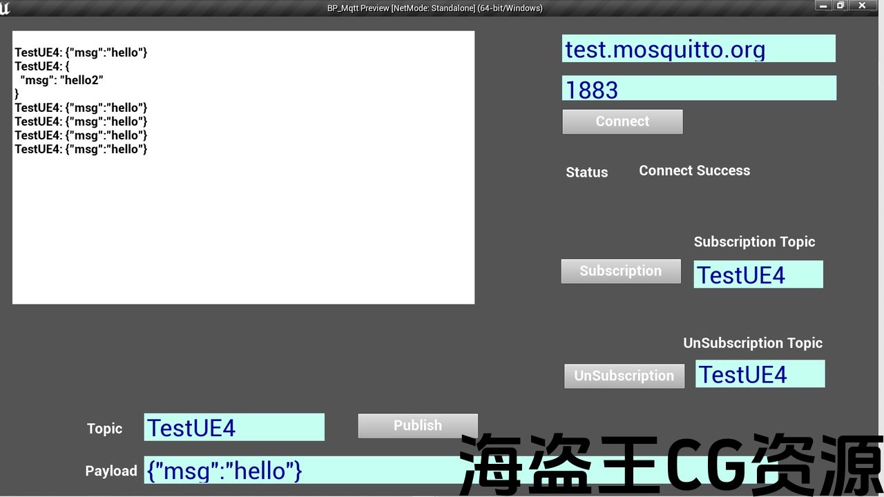 - 您可以通过mqtt发送Actor或UObject,使用字节数组(属性必须选择IsSaveGame)或Json字符串。