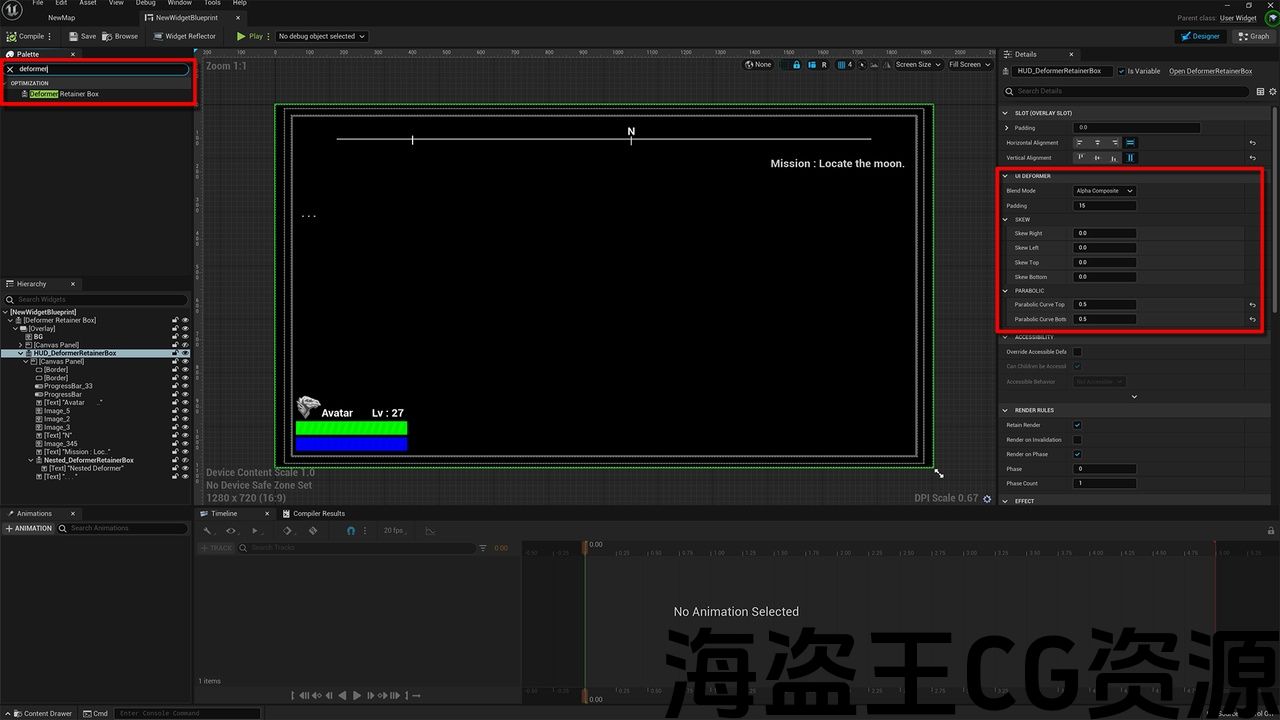 Adds a custom Retainer Box called “Deformer Retainer Box” inside UMG that allows widgets under it to be deformed.