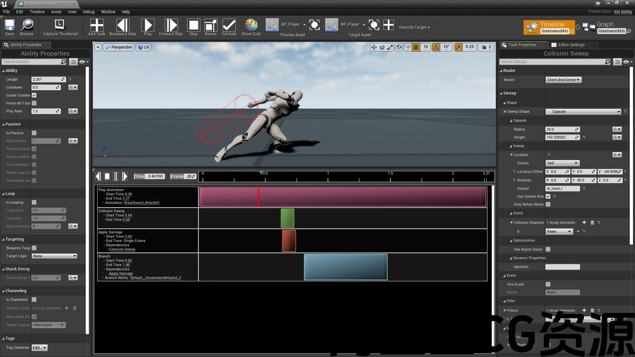 • 20+ various Tasks to build your Ability with (Play Animation, Play Sound, Collision Query, Spawn Actor, Apply Damage, etc).
