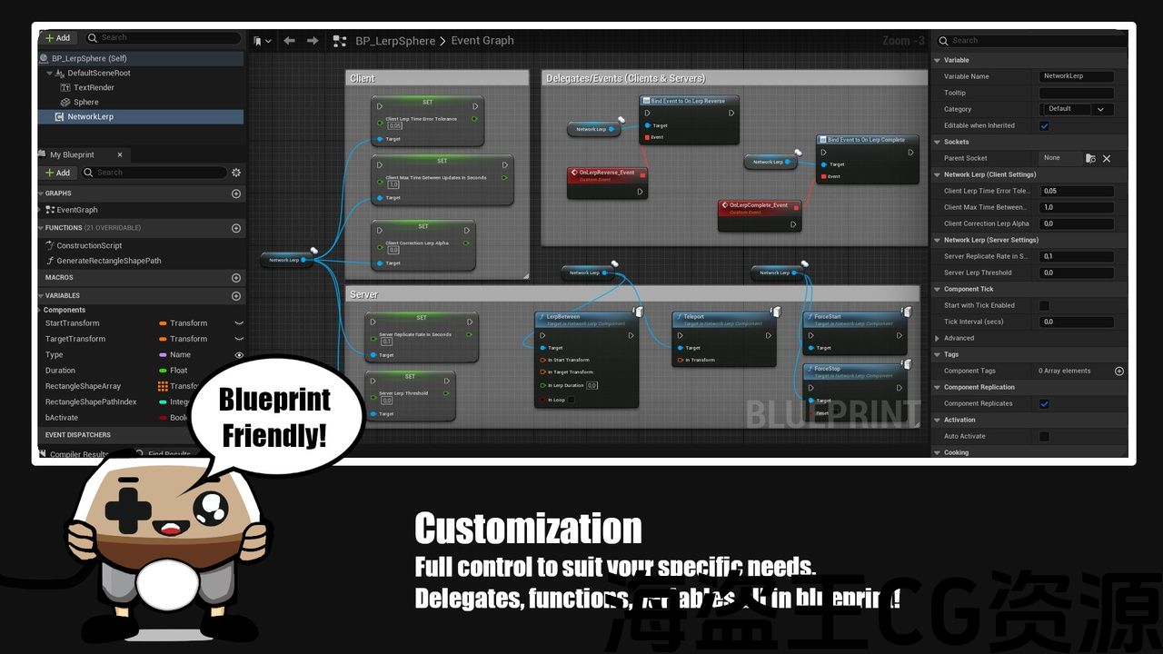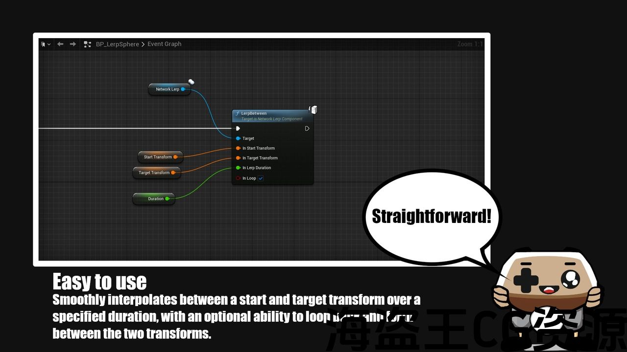 易于使用:将Network Lerp Movement插件集成到您的项目中是一件轻而易举的事。 只需将组件附加到所需的actor,配置必要的参数,在服务器上调用LerpBetween函数,并见证平滑,网络友好的移动的魔力。