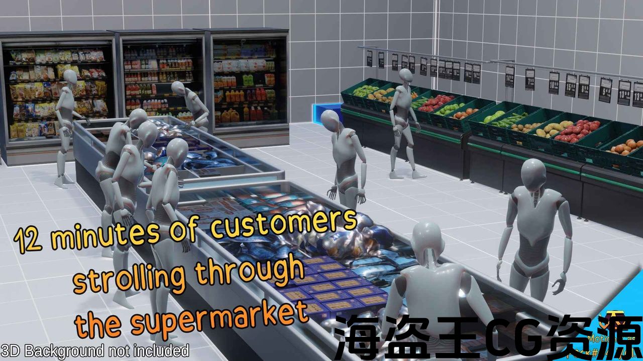 -10个顾客在几个空间限制下(L形、直形、U形等)在商店里散步的长动画。),全部在21.721帧或总共超过10分钟的动画上
