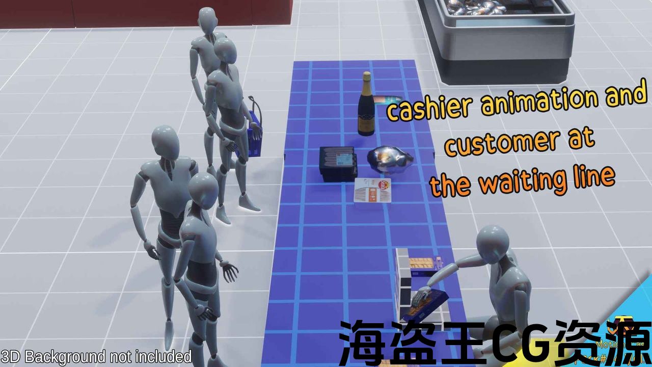 -3 animations of customers waiting at the cash desk (4 minutes of animations)