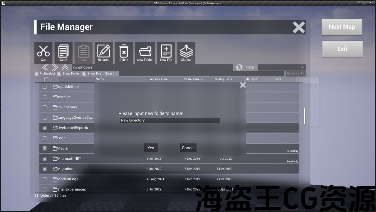 This plugin provides a UMG framework for developing various in-game file managers.