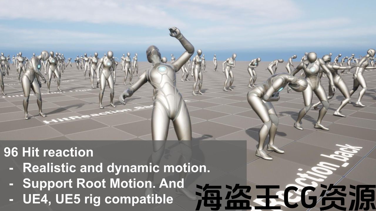 96 Realistic hit reaction motion. This will suit any type of hitting or impact reaction.