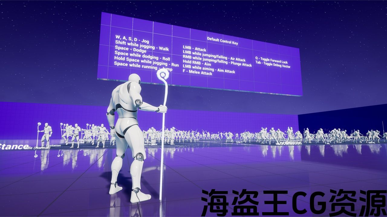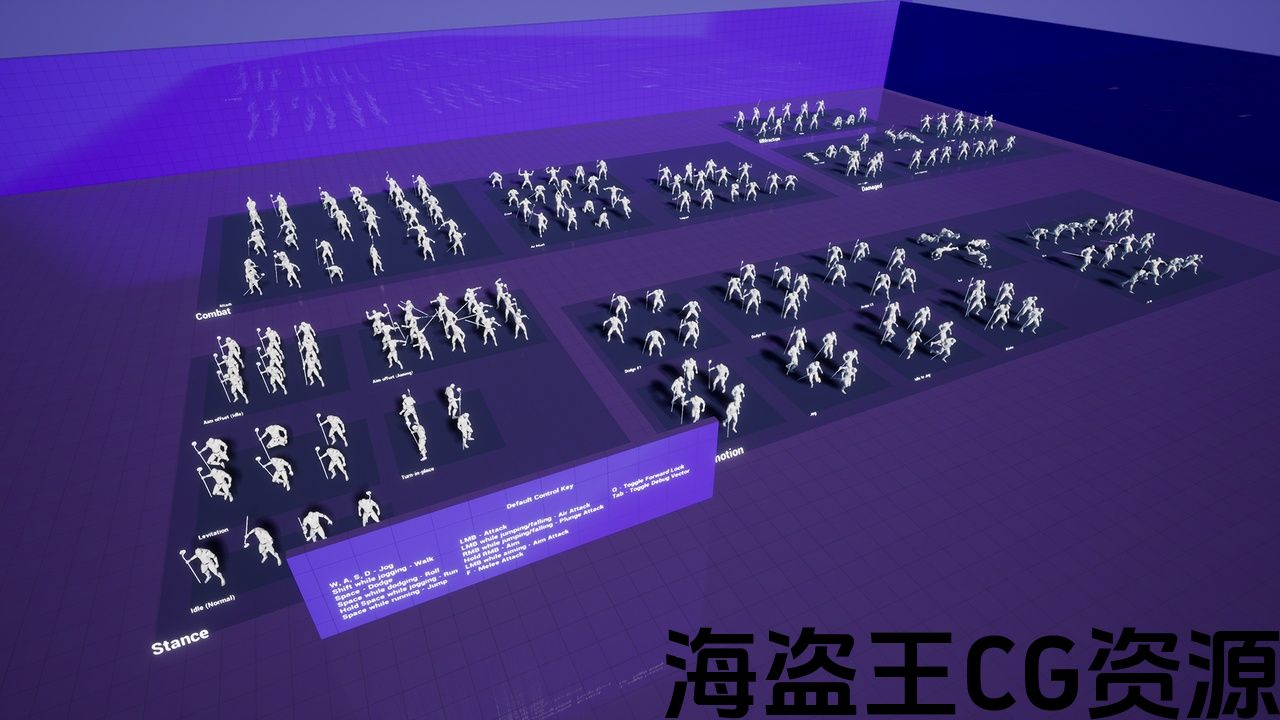 - 运动动画,包括步行,慢跑,跑步,躲避,滚动,跳跃等。
