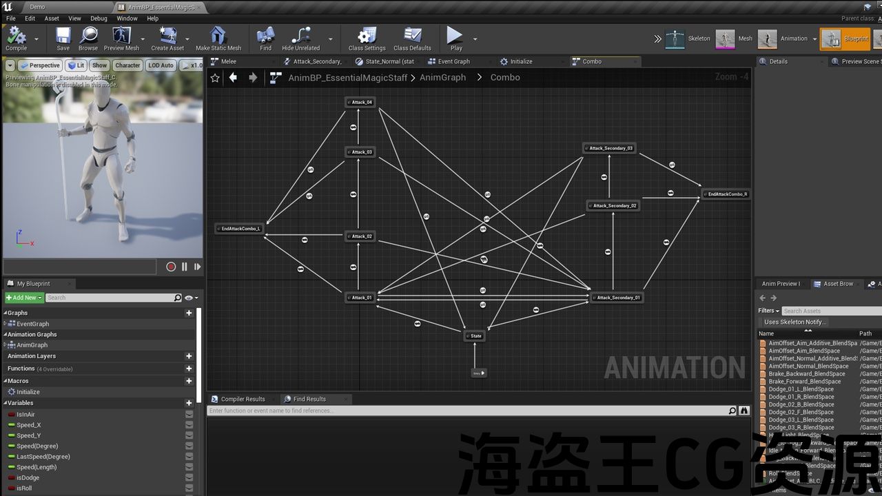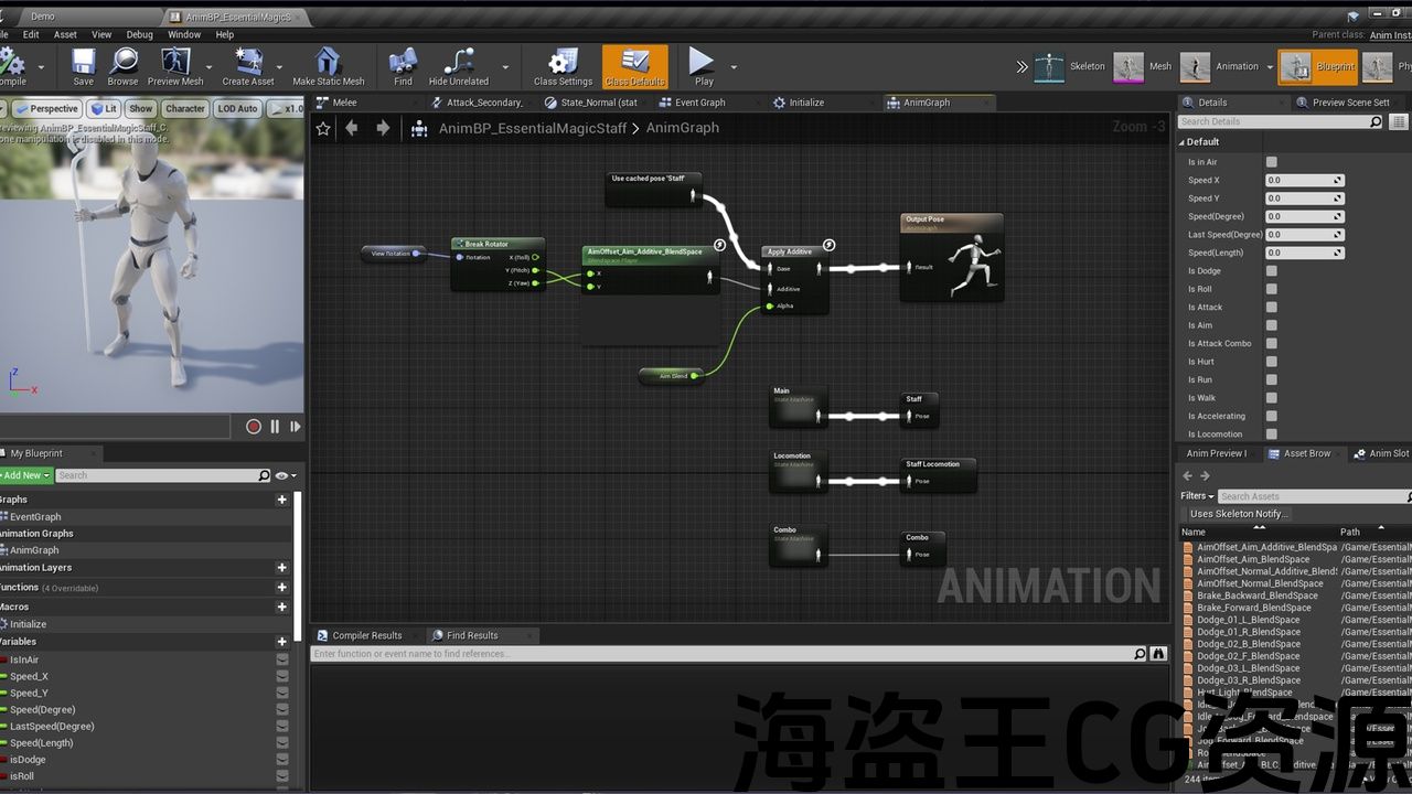 这个软件包包括一个具有魔法杖战斗风格的角色的基本动画,以及一个可玩的角色蓝图。 推荐用于动作RPG游戏.