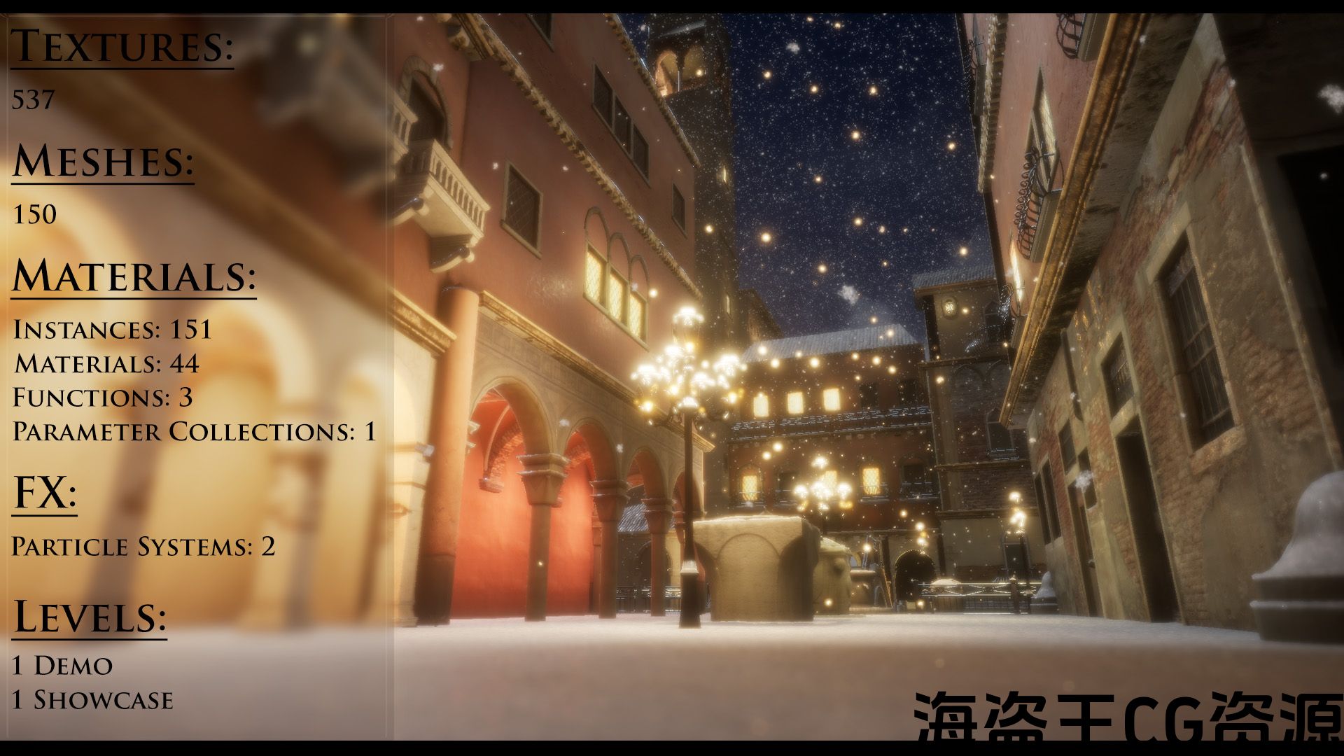 - 超过100个网格,一个基于矢量的纹理着色器和发光纹理的夜间设置,雪和烟雾堆栈系统。