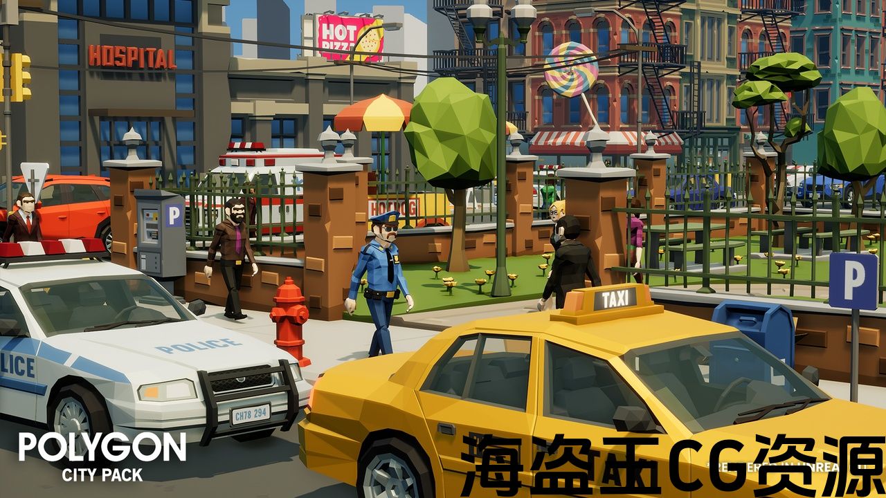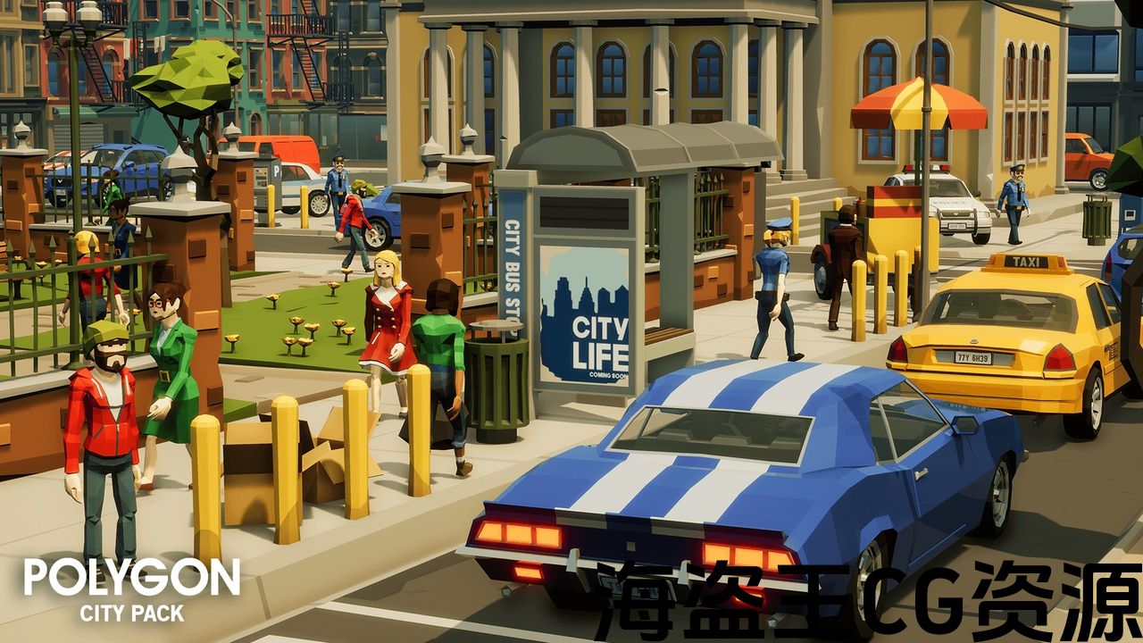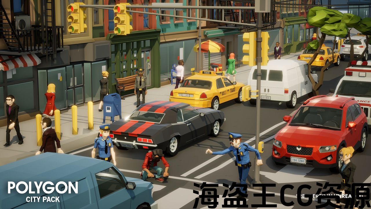 一个低聚资产包的字符,建筑物,道具,车辆和环境资产创建一个城市基于多边形风格的游戏。